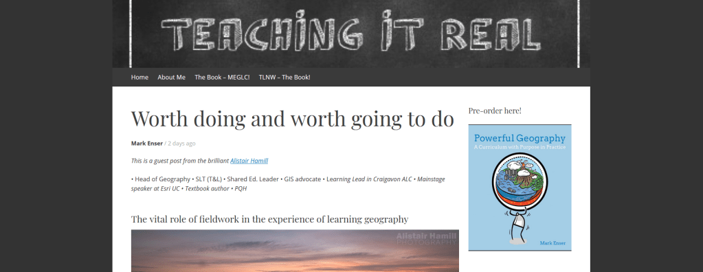 Pretty much every geographer agrees (through various frames and with various reasons), that fieldwork is exceptionally important. If you’d like to dive deeper on this debate, I’d like to refer you to the thoughts of Alistair Hamill (@lcgeography), by way of an eloquent post he wrote as a guest on Mark Enser’s “Teaching It Real” blog.