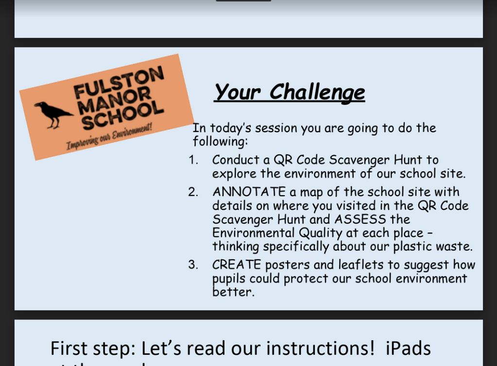 Thanks to Vicki Mitchell via Facebook: “One for Year 7s to get to know our site using a QR code scavenger hunt, conduct an EQs with plastic waste around site as a focus, and linked to citizenship as pupils then make an on-site campaign to encourage their fellow pupils to look after our school environment.” Shared via Google Drive.