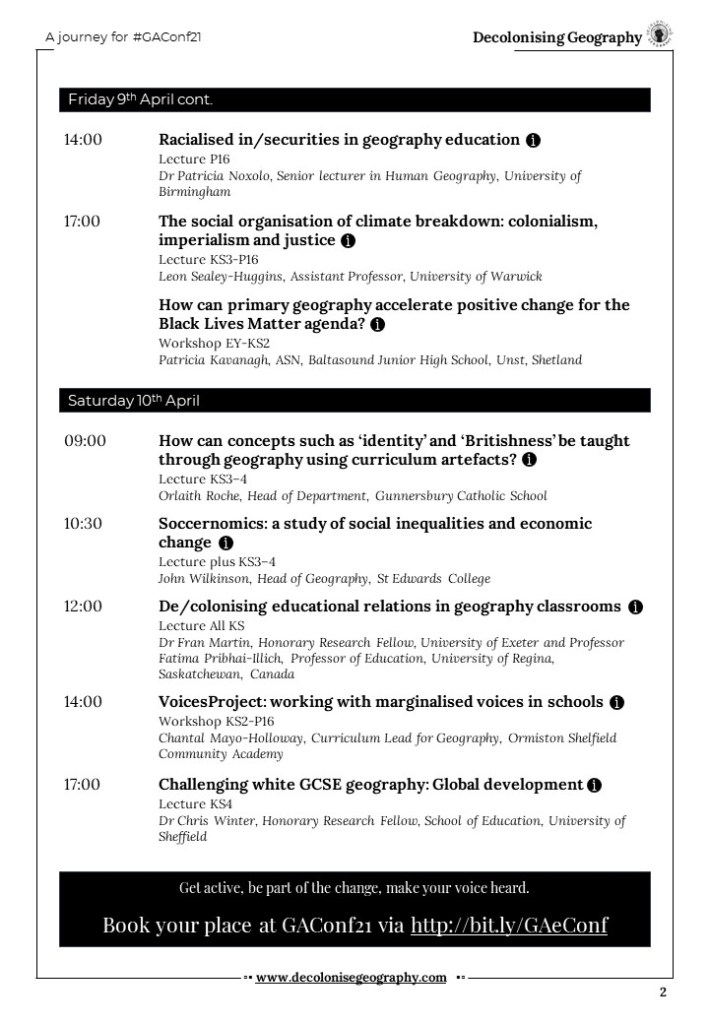 The 2021 Geographical Association Annual Conference (GAConf21) is shaping up to be one of the most diverse yet, in terms of contributors and issues, with a healthy focus on decolonising education. The Decolonising Geography group have collated this shortlist of sessions that focus on this and related issues. It is not exhaustive, so please ensure you check out the full GAConf21 programme for yourself.