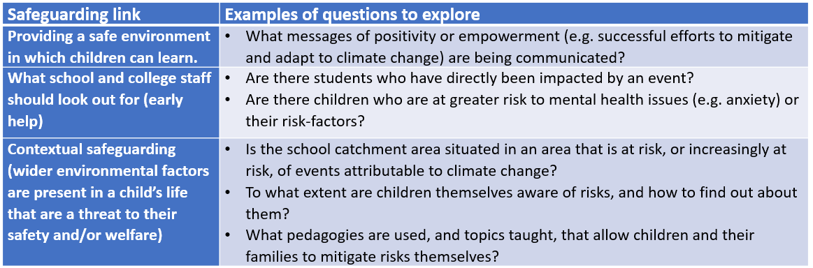 The desired impacts of the National Education Nature Park and Climate Leaders Award is for young people to have a greater connection to nature, understand it’s value, and promote better physical and mental health. A school’s duty of promoting the well-being of members of their community and their duty to safeguarding provides an opportunity to stay ‘one-step ahead’ with regards to the proposals in this draft strategy. Taking the fact that climate change is real, and we can increasingly attribute it to extreme weather events that can threaten school sites and the well-being of pupils, both physically and mentally, then we can frame climate change as a safeguarding issue – a framing that I and others have dedicated a lot of time to promoting.
