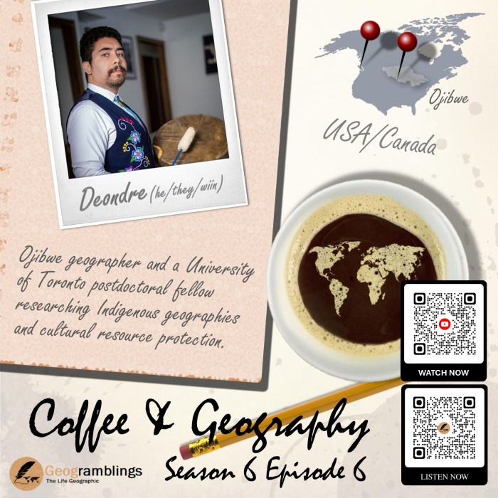 When someone like Dr Niiyokamigaabaw Deondre Smiles, an Indigenous geographer, opens up their time for me, I really am deeply grateful. Joining me from Victoria, British Columbia, our conversation for the Coffee & Geography podcast was rich, generous, expansive, and rooted in a geography that moves far beyond lines on a map.