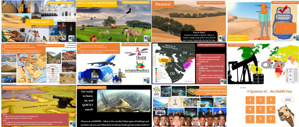 Update to Lesson 8 of the Middle East unit: Massive thanks to Clare Akrasi, Geography, Travel & Tourism Teacher at St Richard’s Catholic College for creating a task sheet for students using ArcGIS. Download a copy here: