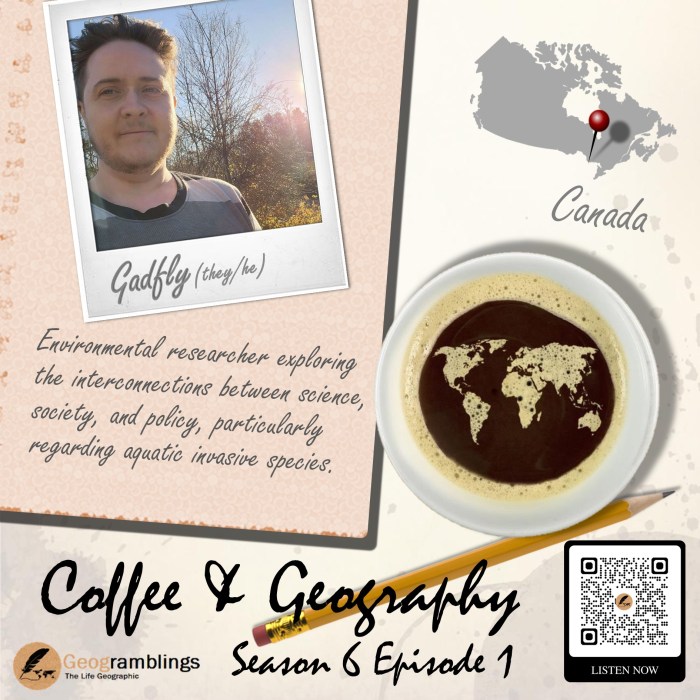 There’s something quite special about opening a new season of Coffee & Geography with a guest who shifts the way you think about a topic you thought you understood. My conversation with Gadfly Stratton, an environmental researcher based in Ontario, did exactly that. I expected to talk about invasive species, and we certainly did; but what I wasn’t expecting was how effortlessly this would unfold into a deeper reflection on community, identity, belonging, and who gets to participate in science in the first place.